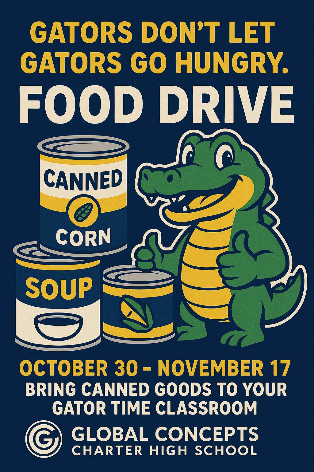 Hey Gators! Our student council is having a food drive to fill up the pantry in our Parent Room, so that we can be a blessing to Gator families in need. Help us out with a good cause, and help your...